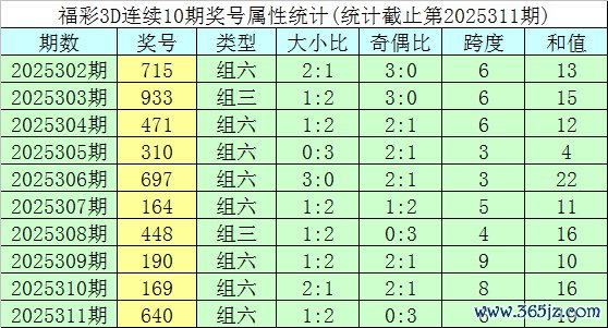 开奖转头:福彩3D第2025311期奖号为640。奖号花式为组六,大小花式为大小小,奇偶花式为偶偶偶,和值为10,跨度为6。